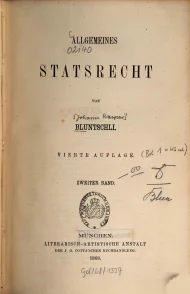 Bluntschli, Johann Caspar, Allgemeines Statsrecht, Zweiter Band, Vierte Auflage, München 1868