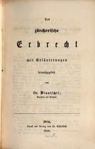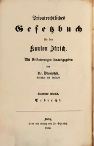 Bluntschli, Johann Caspar, Privatrechtliches Gesetzbuch für den Kanton Zürich, Mit Erläuterungen, Vierter Band, Erbrecht, Zürich 1856