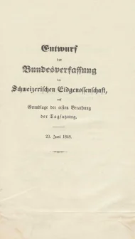 Spitteler, Karl, Gesandtschaftsbericht vom 23. Juni 1848 inkl. "Entwurf der Bundesverfassung der Schweizerischen Eidgenossenschaft auf Grundlage der ersten Berathung der Tagsatzung" vom 23. Juni 1848 mit handschriftlichen Anmerkungen