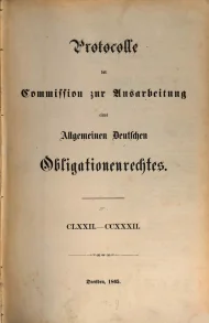 Protocolle der Commission zur Ausarbeitung eines Allgemeinen Deutschen Obligationenrechtes, CLXXII.-CCXXXII., Dresden 1865