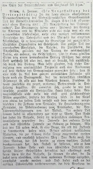 Ehrlich, Eugen, Die Neugestaltung des Vertragsrechtes, Vortragsberichte in der Neuen Freien Presse vom 6. Januar 1906, S. 5, im Czernowitzer Tagblatt vom 9. Jänner 1906, S. 4 f., in der Czernowitzer Allgemeinen Zeitung vom 11. Jänner 1906, S. 3; 4. Dezember 1907, S. 9 sowie in Neues Wiener Tagblatt vom 4. Dezember 1907
