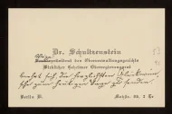 Visitenkarte von Max Schultzenstein für Otto von Gierke, Berlin, Januar 1921