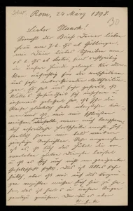 Brief von Konrad Schwaegermann an Gottlieb Planck, Rom, 24.3.1898