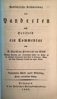 Glück, Christian Friedrich, Ausführliche Erläuterung der Pandecten nach Hellfeld : ein Commentar, Neunzehnten Theils zweite Abtheilung, Zweite, unveränderte Auflage, Erlangen 1845