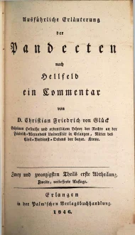 Glück, Christian Friedrich, Ausführliche Erläuterung der Pandecten nach Hellfeld : ein Commentar, Zwey und zwanzigsten Theils erste Abtheilung, Zweite, unveränderte Auflage, Erlangen 1846