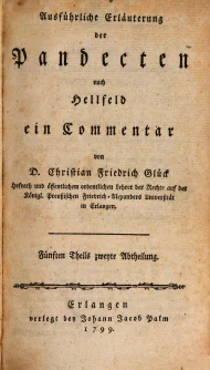 Glück, Christian Friedrich, Versuch einer ausführlichen Erläuterung der Pandecten nach Hellfeld : ein Commentar für meine Zuhörer, Fünften Theils zweite Abtheilung, Erlangen 1799