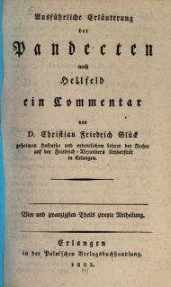 Glück, Christian Friedrich, Versuch einer ausführlichen Erläuterung der Pandecten nach Hellfeld : ein Commentar für meine Zuhörer, Vier und zwanzigsten Theils zweyte Abtheilung, Erlangen 1823
