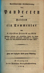 Glück, Christian Friedrich, Versuch einer ausführlichen Erläuterung der Pandecten nach Hellfeld : ein Commentar für meine Zuhörer, Zwey und dreyßigsten Theils zweyte Abtheilung, Erlangen 1829