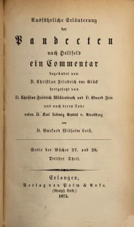 Glück, Christian Friedrich/Mühlenbruch, Christian Friedrich/Fein, Eduard/Arndts von Arnesberg, Karl Ludwig/Leist, Burkard Wilhelm, Ausführliche Erläuterung der Pandecten nach Hellfeld : ein Commentar, Serie der Bücher 37. und 38. Dritter Theil, Erlangen 1875