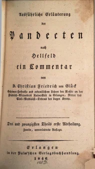 Glück, Christian Friedrich, Ausführliche Erläuterung der Pandecten nach Hellfeld : ein Commentar, Drei und zwanzigsten Theils erste Abtheilung, Zweite, unveränderte Auflage, Erlangen 1846