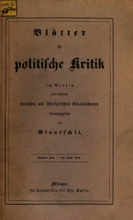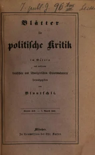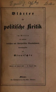 Bluntschli, Johann Caspar (Hrsg.), Blätter für politische Kritik, Erstes Heft, München