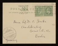 Postkarte von Frederick Pollock an Otto von Gierke, London, 28.11.1907