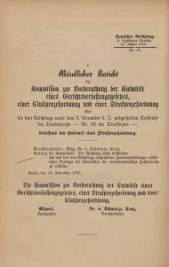 Hahn, Carl/Stegemann, Eduard (Hrsg.), Die gesammten Materialien zur Strafprozeßordnung und dem Einführungsgesetz zu derselben vom 1. Februar 1877. Auf Veranlassung des Kaiserlichen Reichts-Justizamts herausgeben von C. Hahn, Geh. Ober-Justizrath, Senats-Präsident des Kammergerichts, Erste Abtheilung, 2. Auflage : Materialien zu dem Gerichtsverfassungs-Gesetz, Zweite Abtheilung, Berlin 1886